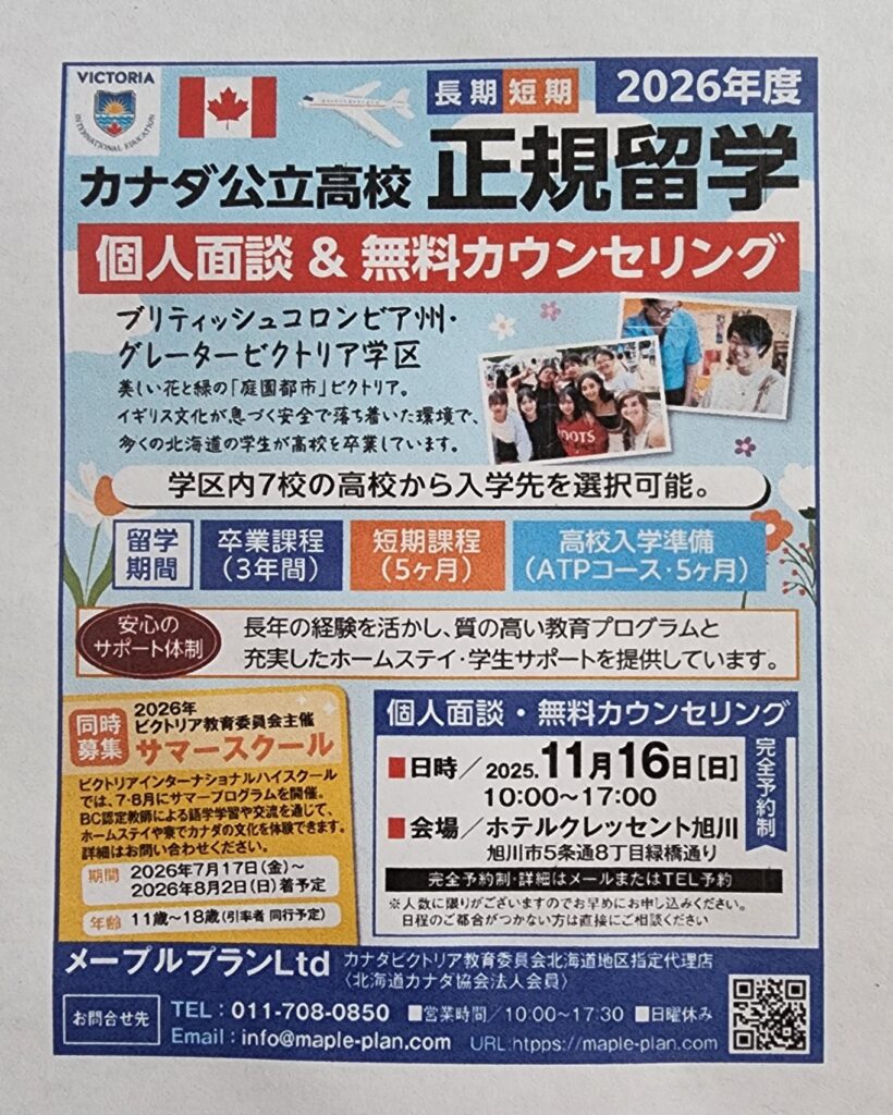 カナダビクトリア教育委員会北海道地区指定代理店 北海道カナダ協会法人会員 MapleplanメープルプランLtd